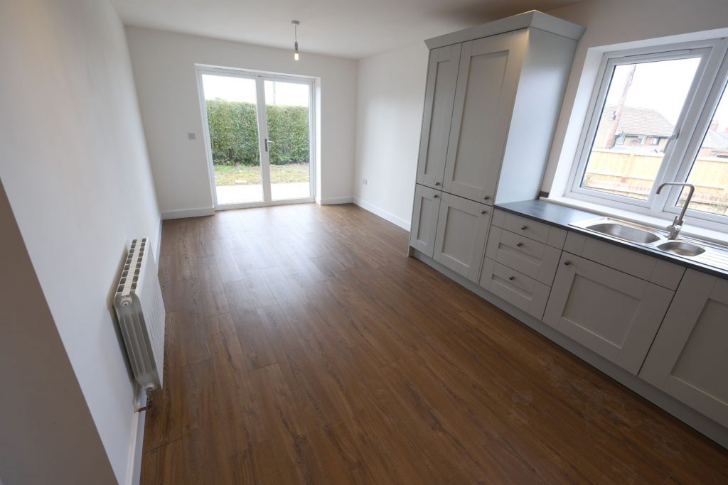 A good sized kitchen/diner is fitted with dove grey kitchen units fitted with hob, oven, an eye-level microwave, dishwasher as well as a fridge freezer. LVT hard flooring is fitted in the kitchen as well as the hall and under stairs area.